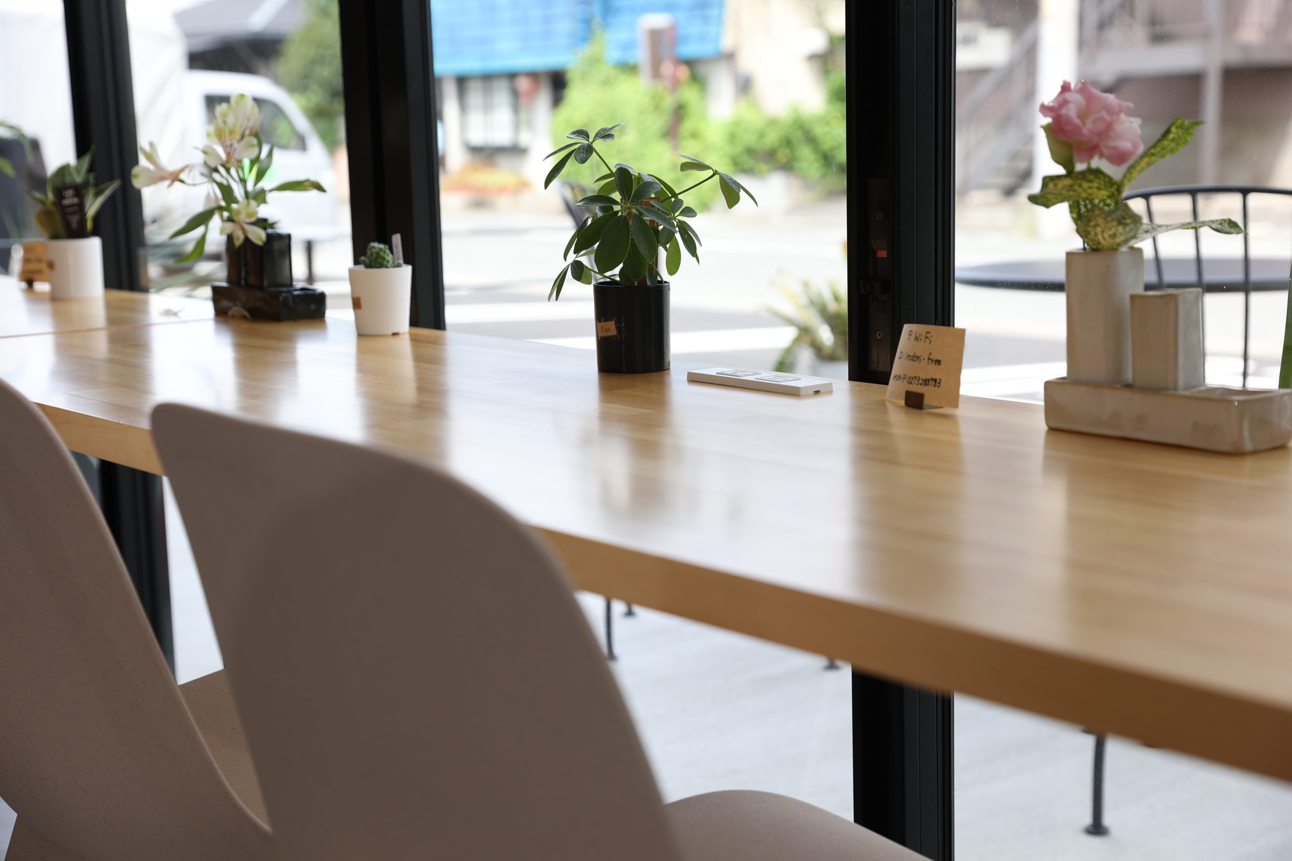 IRODORI flower&cafeでは、お花に囲まれてカフェタイムをお楽しみいただくことができます。電源等もご用意しておりますので、コワーキングスペースとしてご利用いただくことも可能です。お席に飾ってあるお花や植物は、QRコードを利用してその場でご購入いただけます。後日オンラインショップにてご購入いただくこともできますので、気分やタイミングに合わせて是非ご活用くださいませ。
